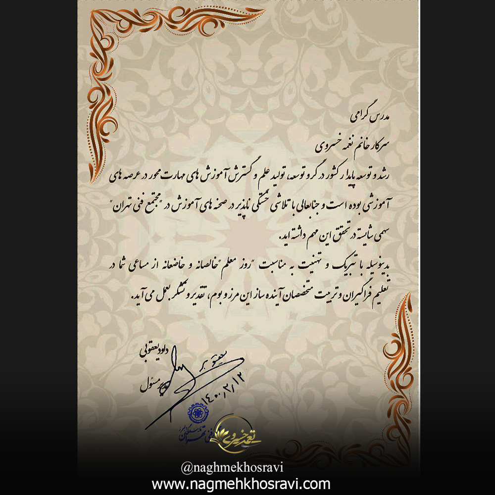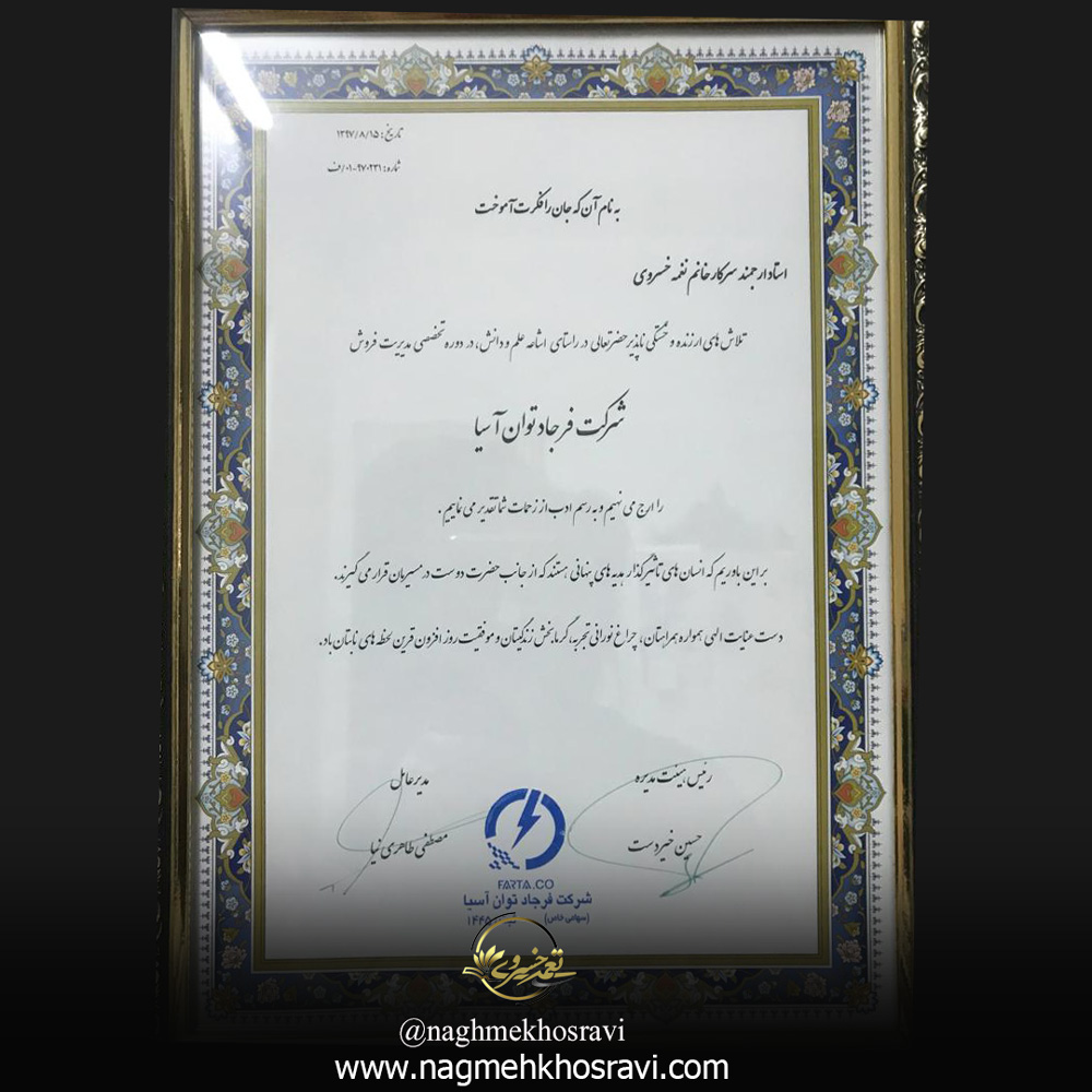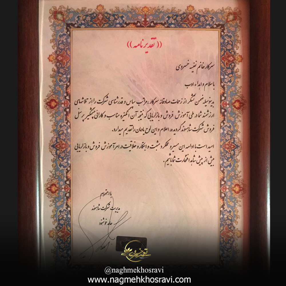 امروز آموزش با کیفیت ، رسالت و حدیث نفس من و شورعاشقانه زندگیم است و با افتخار مشاوربیش از صدها مجموعه معتبر و مختلفی نیز در کشورم بوده و هستم و موفقیت این عزیزان در مسیر تجارت،همیشه موفقیت بنده بوده است .