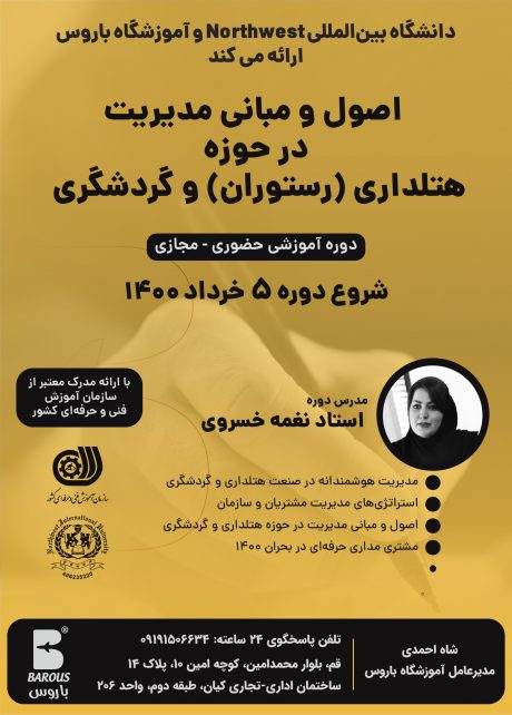 رویداد آموزش مدیریت حرفه ای ،بازاریابی و تبلیغات موثر در موسسه آموزش آزادباروس با مدیریت اقای مهندس شاه احمدی گرانقدر در 5 خرداد 1400 در شهر قم، به مدت ۸ ساعت با مدرک معتبر گذر مهارت برگزار و به دلیل وجود کرونا همزمان آنلاین و حضوری برای مشتاقان یادگیری در این صنعت رو به رشدبیشترسرنوشت ساز شد .