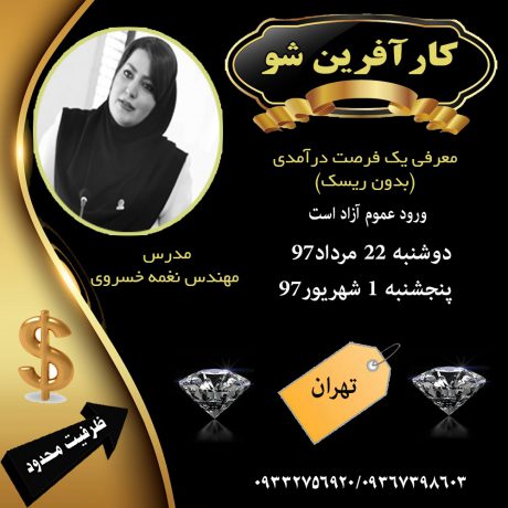 ٢٢مرداد و ١شهريور كارگاه كارآفرين شو با معرفي يك فرصت درآمدي بدون ريسك در ركودبازاراقتصاديمشاهده